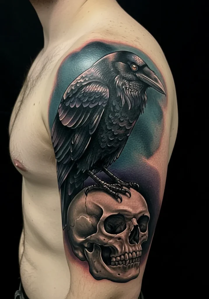 Raven and Skull Shoulder Tattoo