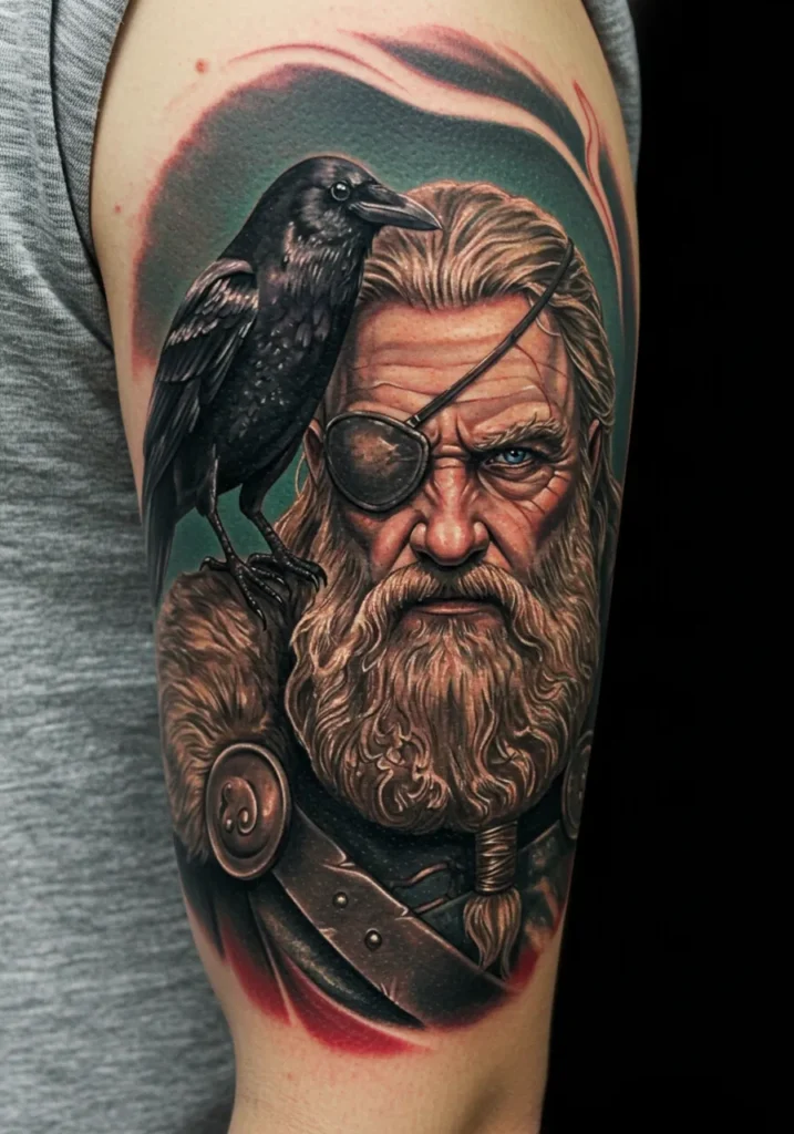 Okay, I m obsessed. This one gives major Odin vibes, and let s be real, who wouldn t want that kind of energy on their arm? It s intense but not over-the-top, full of myth and masculinity. The raven brings in that mysterious edge, and the realism is jaw-dropping. If you love tattoos that tell a whole story without saying a word, this one hits the mark.