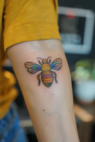 I m absolutely obsessed with how this LGBTQ+ tattoo turns something as small as a bee into a powerful symbol of pride and positivity. It s playful, it s lighthearted, and it still makes a statement. There s something super charming about using a bee to represent community and connection, especially when it s rainbow-coated. I d honestly wear this one just to make people smile and maybe spark a cute convo or two.