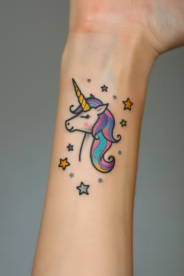 Cute Unicorn LGBTQ+ Wrist Tattoo
