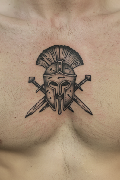 Spartan Helmet with Crossed Swords Tattoo