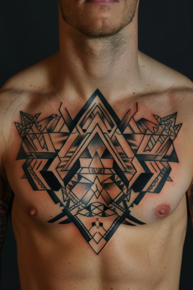 Abstract Geometric Chest Tattoo