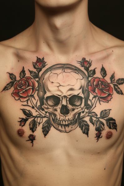 Skull with Roses Tattoo