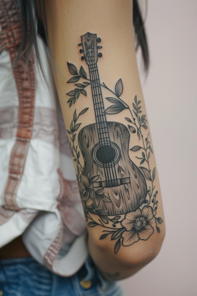 Acoustic Guitar and Floral Tattoo