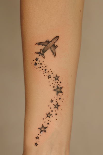 Airplane with Starry Trail Tattoo