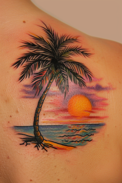Tropical Sunset Travel Tattoo
