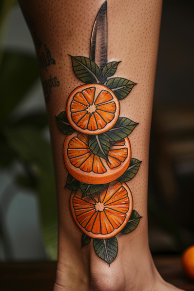 Sliced Oranges and Knife Leg Tattoo