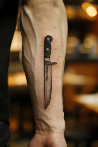 Personally, I think this tattoo is an absolute win for any chef or cooking enthusiast. It s not just a piece of art; it s a bold statement of passion for the culinary world. The forearm placement is ideal too visible while cooking, it almost feels like an extension of the arm itself. Plus, there s something undeniably cool about having a knife tattoo that s so sharp it could almost slice through the air. If you love cooking as much as you love ink, this design just might be your perfect match.