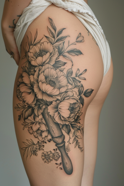 Feminine Rolling Pin Thigh Tattoo