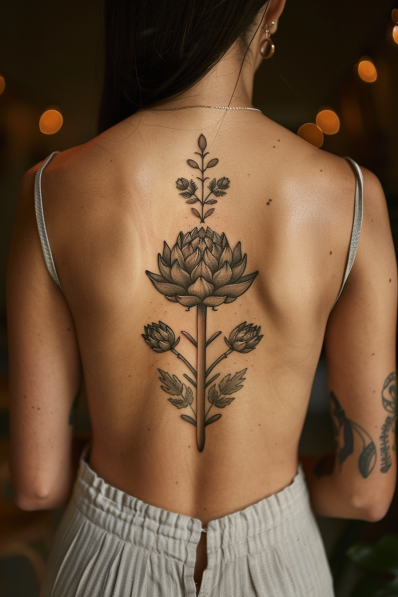 Elegant Artichoke Spine Tattoo