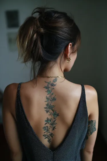 Enchanting Botanical Vine Spine Tattoo