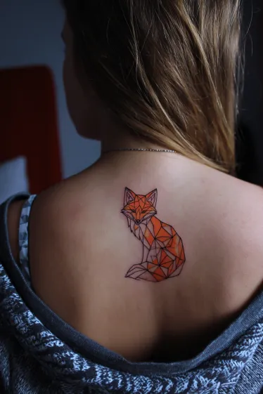 I really like this tattoo because it feels playful and stylish at the same time. The fox symbolizes cleverness and independence, and the geometric design makes it look like a piece of contemporary art. To me, it s the perfect choice for someone who wants a tattoo that s creative, unique, and a little bit cheeky while still looking elegant on the back.