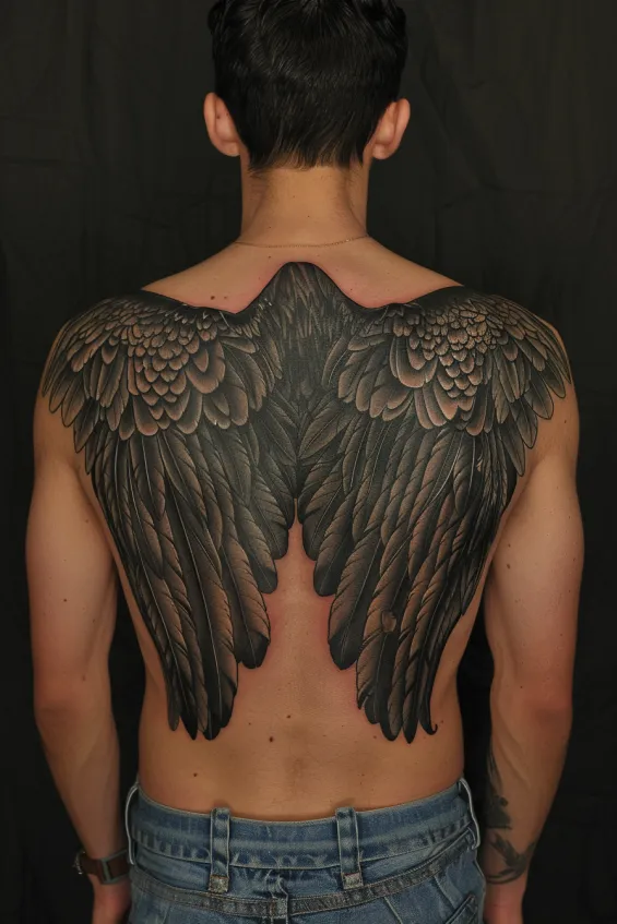 There s something undeniably captivating about this piece. It radiates a sense of power, transformation, and even a touch of the divine. The attention to detail makes it feel almost tangible, as if these wings could lift the wearer right off the ground. If you re drawn to tattoos that feel grand, meaningful, and beautifully executed, this one is nothing short of a masterpiece.