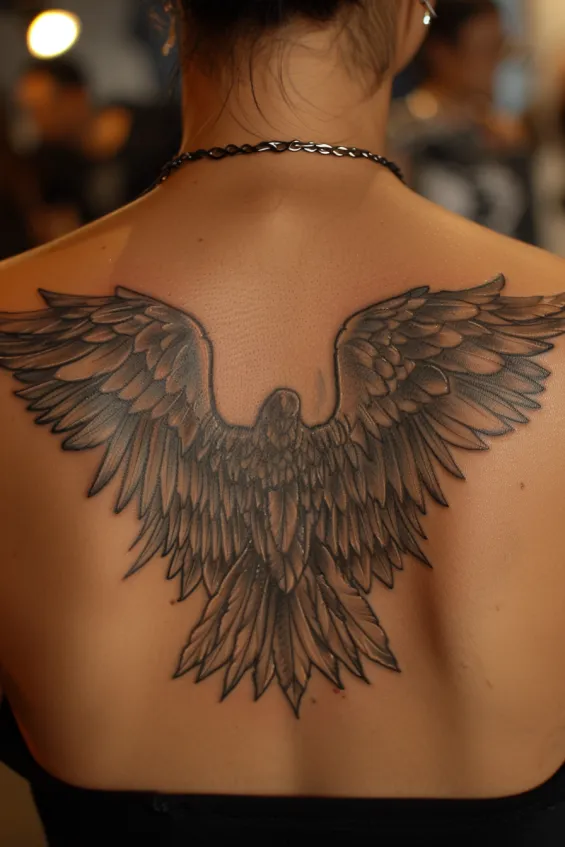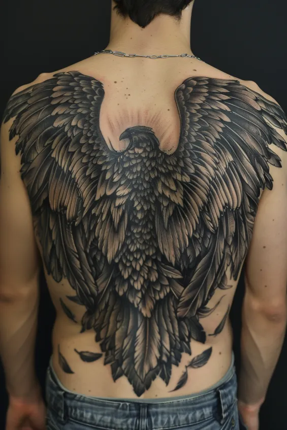 There s something truly commanding about this piece. It radiates strength, freedom, and resilience, making it a perfect choice for anyone who resonates with those qualities. The way it transforms the entire back into a canvas of wings is beyond striking it s a bold statement that feels both artistic and symbolic. If you love tattoos that feel larger than life, this one is pure perfection.