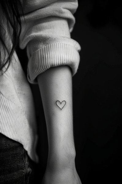 This tattoo is the perfect example of how simplicity can make a big statement. It s a tiny heart outline placed right on the forearm, blending seamlessly with the natural flow of the arm. The clean lines and minimalistic style give it a modern, sleek look. It s one of those tattoos that doesn t need to shout to be heard it s quiet yet confident.