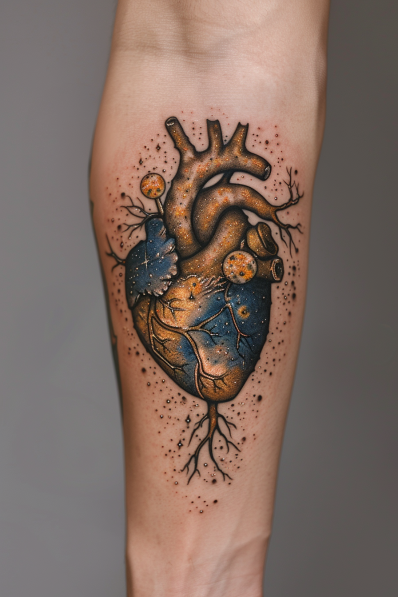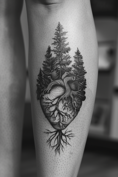 What I love about this tattoo is how it represents growth, life, and grounding. The trees rising from the heart seem to symbolize strength and resilience, while the roots show a deep connection to the earth. It s perfect for nature lovers or anyone who feels that their heart is closely tied to the natural world. This design speaks to both physical and emotional growth, making it meaningful and eye-catching.