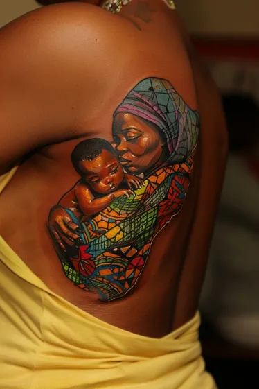 I think this one might be the most touching of them all. It s not just a design, it s a story. A reminder of where strength and softness meet. The way the colors wrap around her body makes it feel like the love is hugging you too. I love how this tattoo blends art and meaning so perfectly. If you re into tattoos that celebrate motherhood and heritage in one powerful piece, this one just melts the heart.