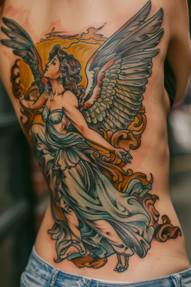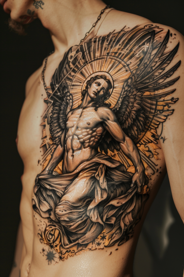 Guardian Angel Chest and Side Tattoo With Majestic Presence