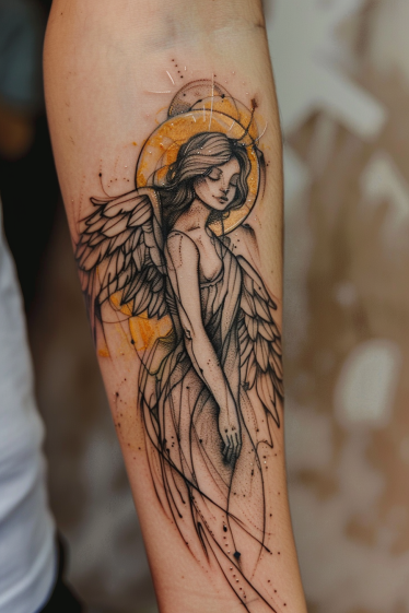 Guardian Angel Forearm Tattoo With Sketch-Style Design
