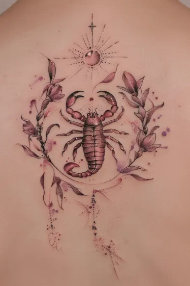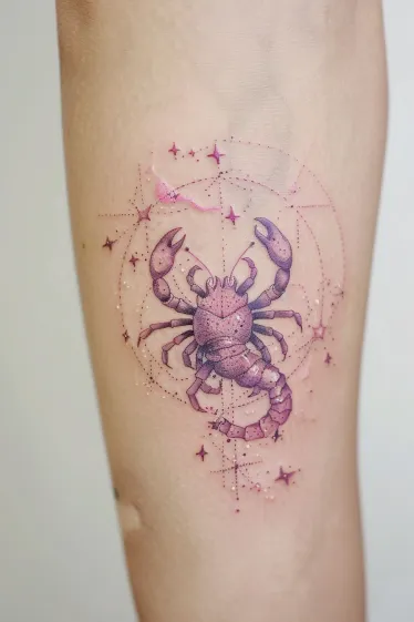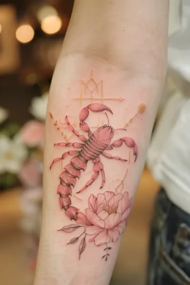I honestly think this is such a power move. It s got this cool contrast going on where the scorpion feels tough and fearless, but the stars and soft pink background make it feel a little cosmic and sweet too. It s the kind of tattoo that says don t mess with me but also yes, I still love glitter. Total Scorpio energy in the most stylish way.