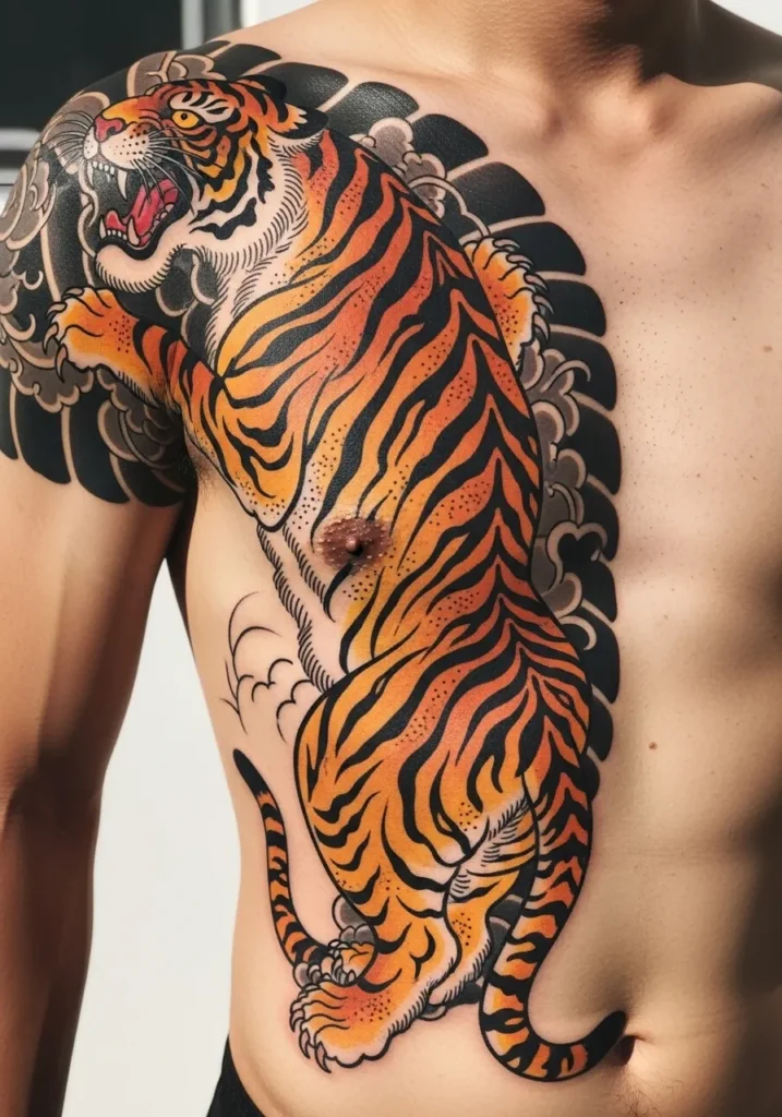 I think this piece is a total masterpiece. The way the tiger seems to move with every shift of the body feels alive and powerful. It s not just a tattoo it s wearable art that radiates strength and confidence.
