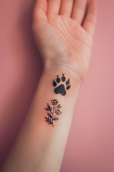 Minimalist Bear Paw and Floral Wrist Tattoo