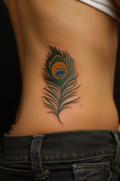 I ve got to say, this tattoo is absolutely gorgeous! The way it s nestled along the ribcage is just perfect it s subtle yet striking, and the colors are just so rich and well-done. There s something really captivating about how the feather s eye catches the light and draws attention without being too loud. And let s be honest, rib tattoos are no joke when it comes to pain, so the fact that this one turned out so beautifully makes it even more impressive. If you re thinking about getting a tattoo that s both elegant and eye-catching, this one definitely hits the mark!