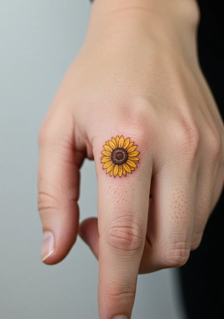Tiny Sunflower Fine Line Finger Tattoo