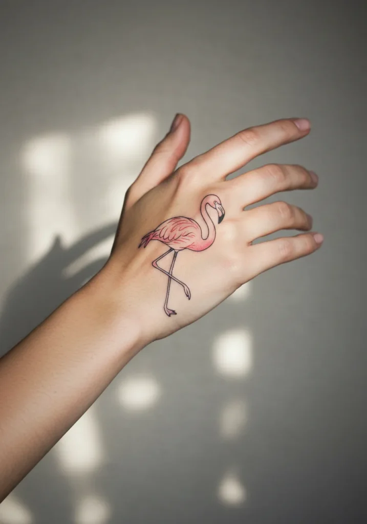Flamingo Fine Line Hand Tattoo