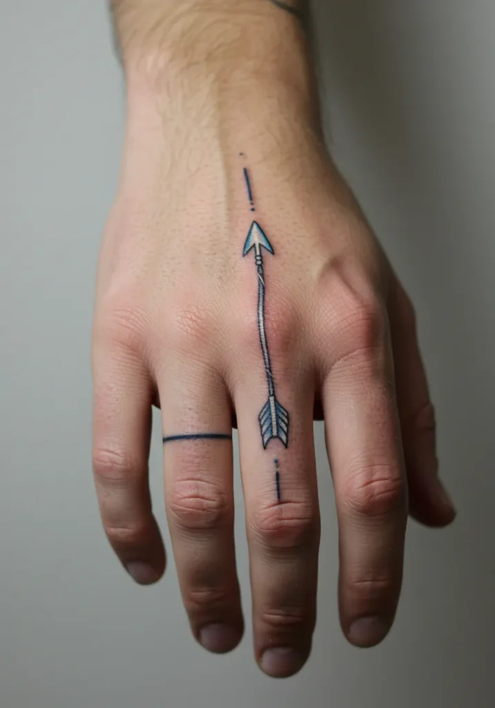 I really love how this tattoo feels so focused and intentional. It s one of those designs that feels like a little reminder to stay steady, aim true, and keep moving forward. Plus, finger tattoos always have that cool factor that makes them feel a little edgy but still super chic. If you re into meaningful symbols with a sleek and simple vibe, this one totally hits the mark.