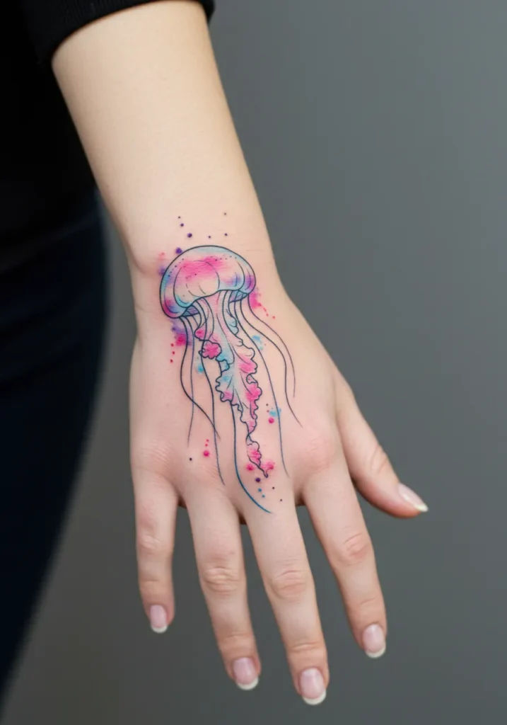 Watercolor Jellyfish Hand Tattoo