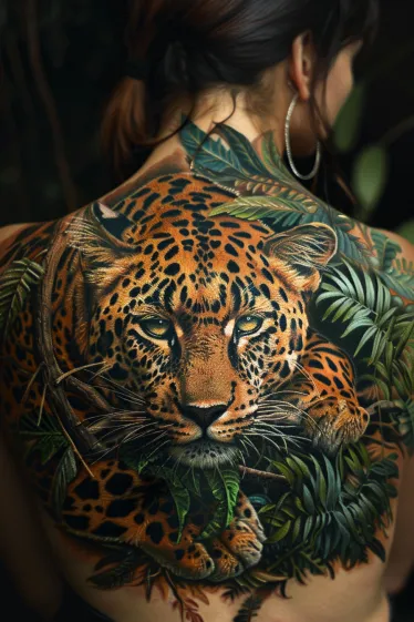 Hyper-Realistic Jungle Leopard Back Tattoo