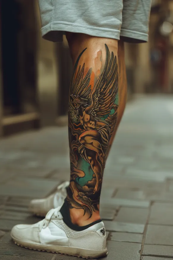 Icarus Greek Mythology Leg Sleeve Tattoo