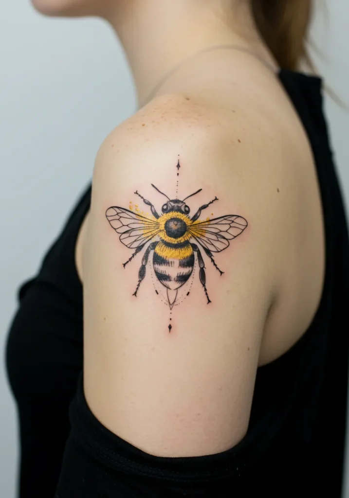 I think this one is seriously adorable. Bees are already such sweet little symbols of hard work and joy, and this tattoo captures that perfectly. I love the mix of softness and structure here. It feels strong and feminine all at once. Honestly, if you re looking for a piece that s tiny but mighty, this bee totally delivers.