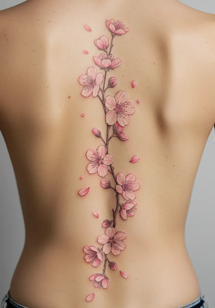 Cherry Blossom Spine Tattoo