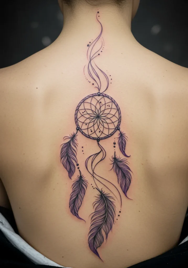 Dreamcatcher Fine Line Spine Tattoo