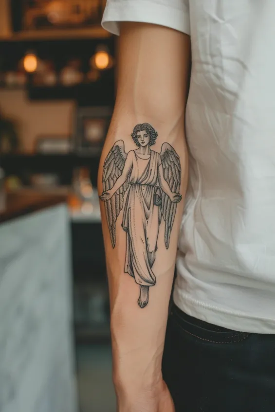 Elegant Guardian Angel Forearm Tattoo