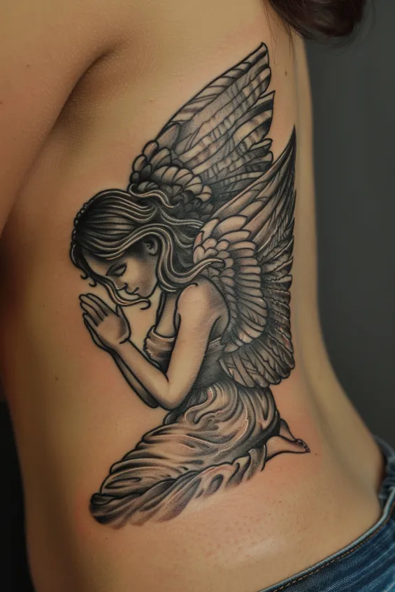 Praying Angel Rib Tattoo