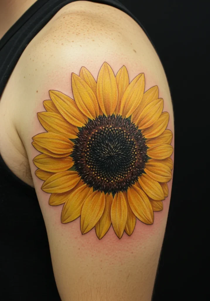 I love this tattoo because it feels like pure happiness and hope wrapped into one simple, stunning symbol. Sunflowers always turn their faces toward the light, and I think that makes them such a beautiful reminder to keep looking for the good, even when times feel heavy. It is heartfelt, bright, and feels like a quiet celebration of life and love.