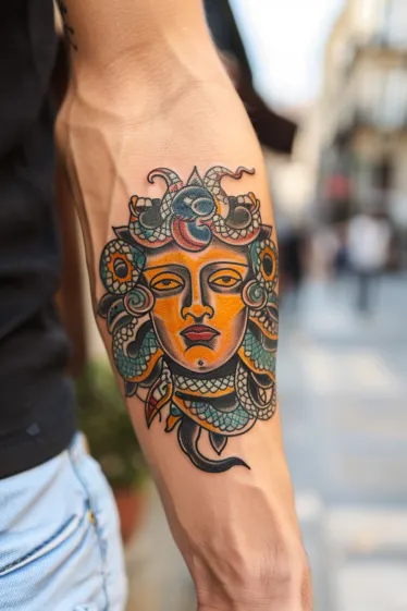 Neo Traditional Medusa Forearm Tattoo with Bold Colors