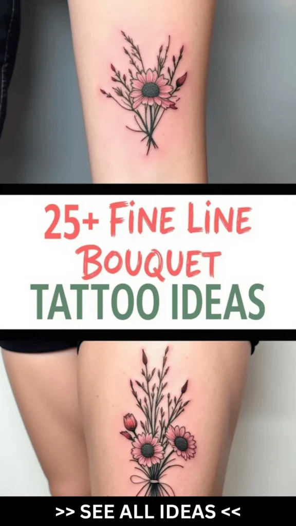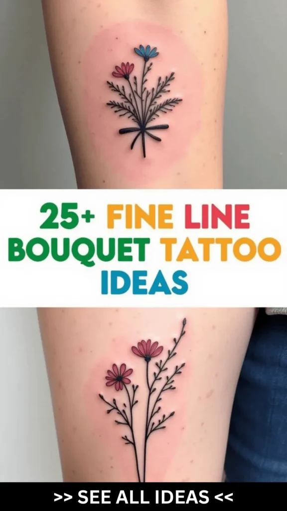 25+ Serene Fine Line Bouquet Tattoo Ideas to Embrace Simple Joy