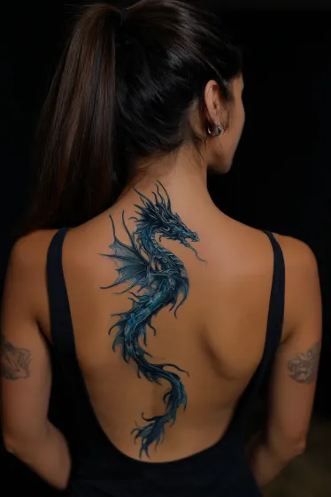 I think this tattoo is incredible because it feels powerful yet graceful. The sea dragon gives off this mysterious, fantasy-ocean vibe, and the way it wraps along the spine makes it look alive. To me, it feels like wearing a piece of art that s bold but also beautifully feminine, and I love how it stands out in such a unique way.