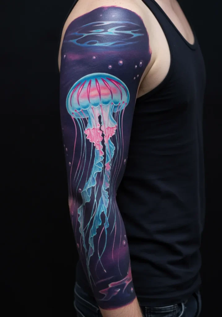Neon Jellyfish Ocean Sleeve Tattoo
