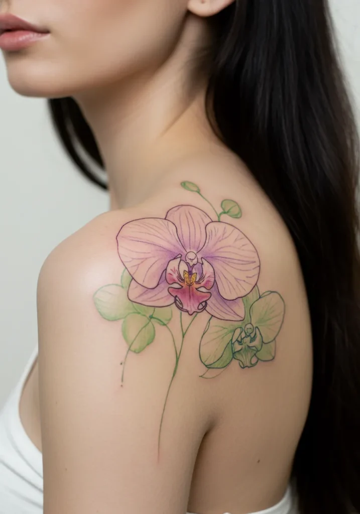 Orchid Shoulder Tattoo