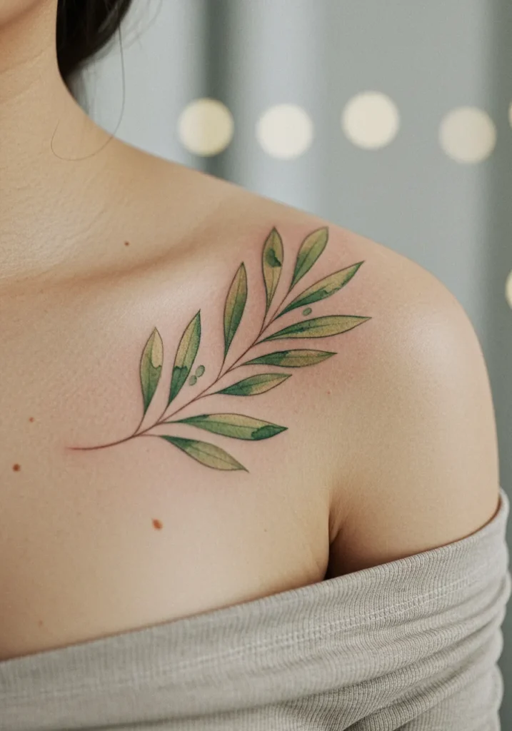 Olive Branch Shoulder Tattoo