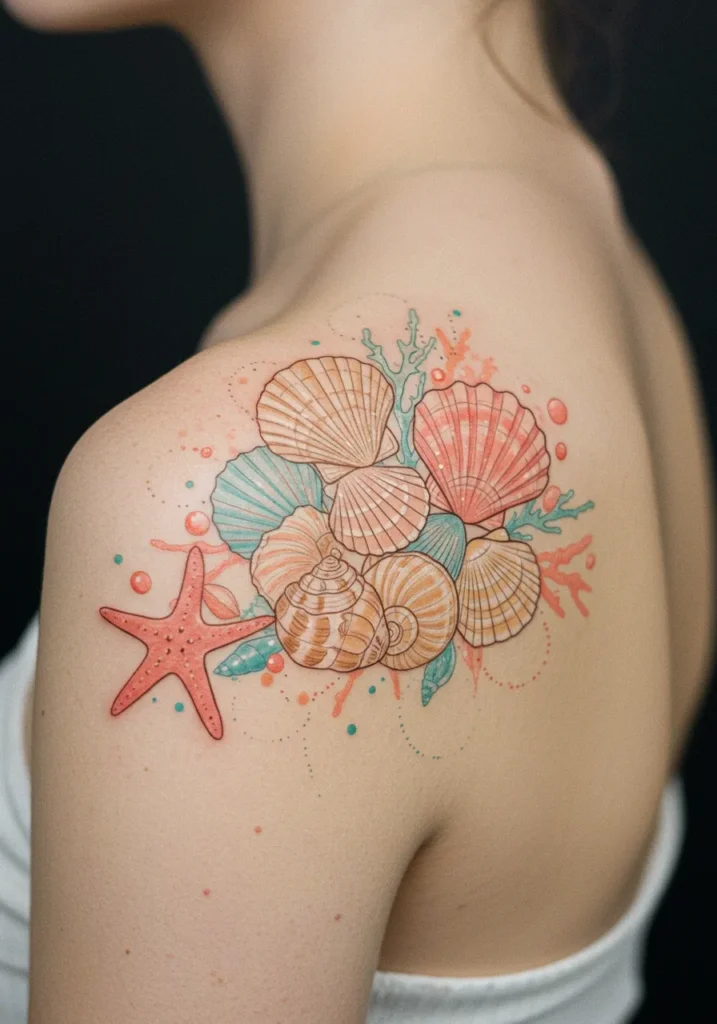 Seashell Cluster Shoulder Tattoo