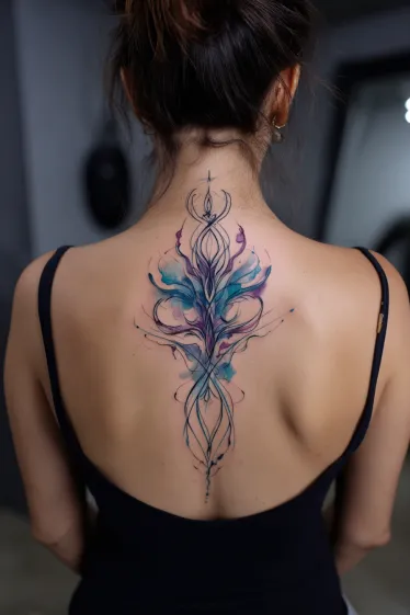 I love this tattoo because it feels like a painting on the skin. The contrast between the clean lines and the watercolor effect makes it unique, and the placement along the spine adds a graceful vertical balance. To me, it s the perfect choice if you want something that feels modern, artistic, and a little bit whimsical at the same time.
