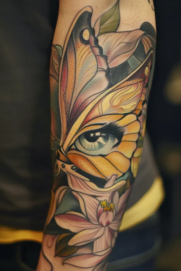 This tattoo is pure magic. The combination of butterflies and eyes gives off a dreamy, mysterious vibe that feels both elegant and a little mystical. I love how the soft colors make it feel light and airy, while the intricate linework adds a bold contrast. It s the perfect mix of delicate and powerful, making it an ideal choice for someone who wants a tattoo that feels enchanting and meaningful.