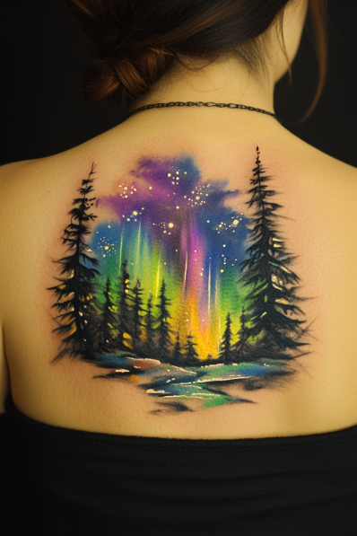 I m totally in awe of this tattoo. It s like having a piece of the Arctic sky permanently painted on your skin, and the blend of colors is nothing short of mesmerizing. It s not just a tribute to the beauty of winter but a celebration of nature s most incredible light show. If you re someone who finds peace and magic in the night sky, this tattoo is an unforgettable way to carry that feeling with you. It s bold, it s vivid, and it s an absolute showstopper.