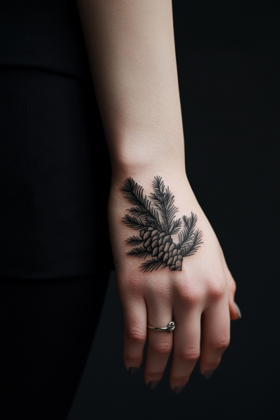 I love how this tattoo feels so grounded and nature-inspired. It s a subtle nod to the holiday season without screaming Christmas, making it perfect for someone who wants a more timeless winter tattoo. The pine cone is a symbol of endurance and hope, fitting beautifully with the spirit of the season. Plus, there s something effortlessly cool about how it flows with the shape of the hand, creating a piece that s understated but seriously eye-catching.